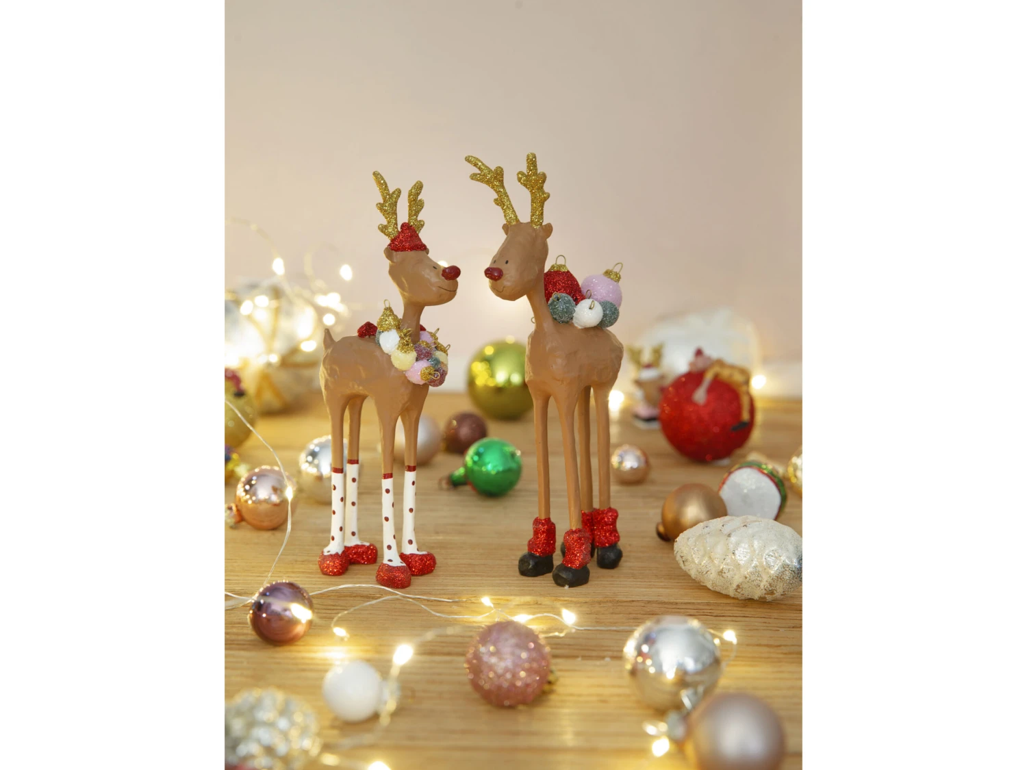 Jedes Jahr kommen Herr & Frau Rudolf vorbei und sorgen dafür, dass Weihnachten noch fröhlicher und gemütlicher wird. Das niedliche Rentierpärchen ist auch in diesem Jahr wieder dabei, und der Weihnachtsbaumschmuck ist über sie gerieselt und hat die beiden in ein festliches Kostüm aus glitzernden Weihnachtskugeln gehüllt.
