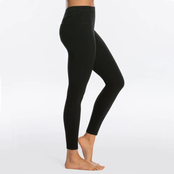 Die Ankle Jean-Ish Legging von Spanx in der Farbe Schwarz. Diese figurformende Legging ist die perfekte Kombination Ihrer Lieblingsjeans und Leggings. Spanx kombiniert dies zu einer Legging die auch noch Ihre Beine, Oberschenkel und den Po leicht formt. Die Legging hat sowohl vorne als auch hinten Hosentaschen. Kombinieren Sie diese Legging mit einer schönen Tunika, Sweaterdress oder einen schicken Jacke.