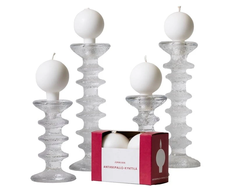 Die Antique-Kugelkerze von Juhava ist die Originalkerze, die von Timo Sarpaneva für die Festivo-Kerzenhalter von Iittala entworfen wurde. Die Kugelkerze ist mit einem Stamm ausgestattet, der sie sicher im Kerzenhalter hält, sei es ein Festivo- oder ein anderer Kerzenhalter, der für Spitzkerzen ausgelegt ist.