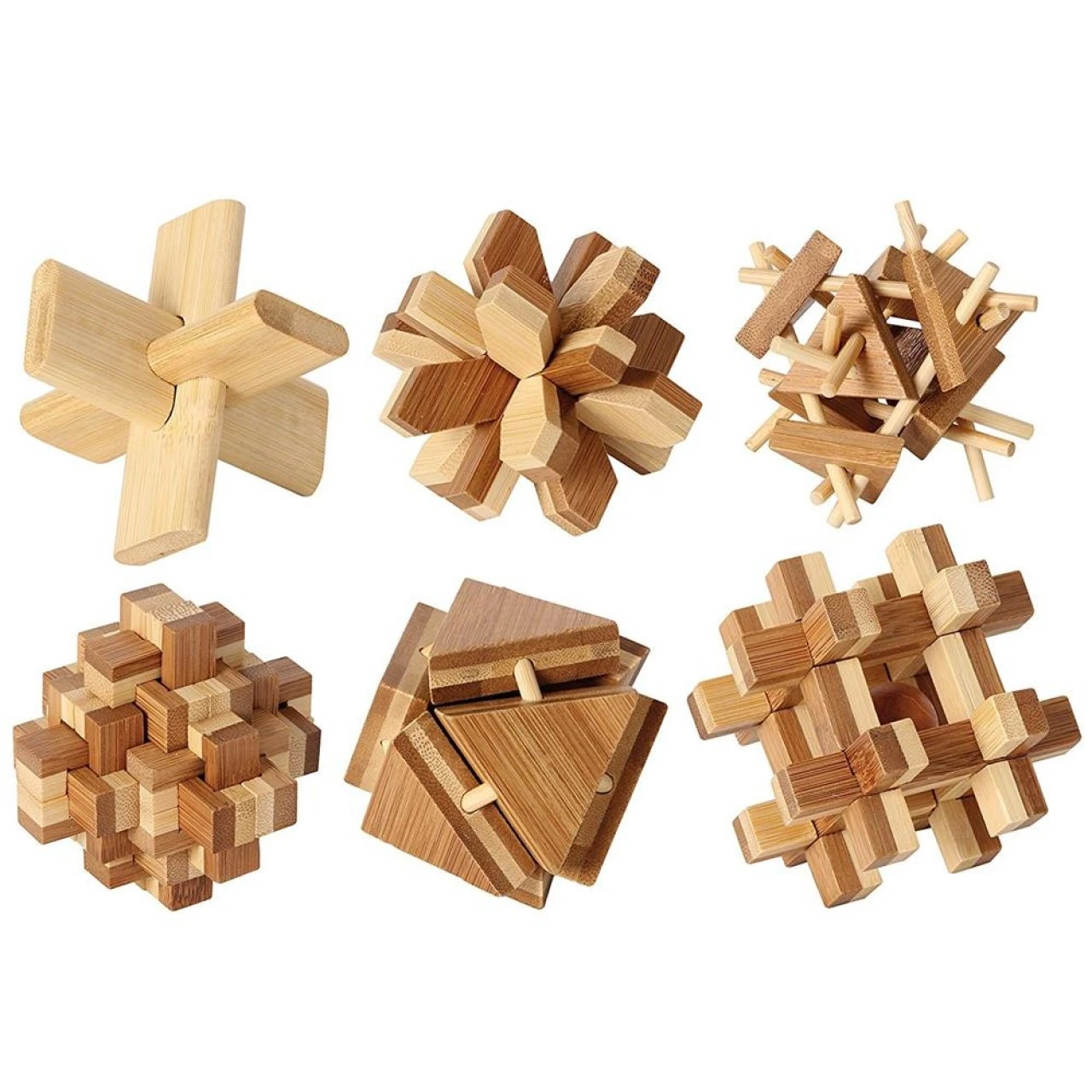 Sie erhalten sechs knifflige und attraktive Puzzles in einer Geschenkbox. Ein exklusives Geschenk für kreative Leute. Das Puzzle Set ist aus Bambus gefertigt, das Material Bambus ist härter als beispielsweise Eichen- oder Buchenholz. Zudem ist es sehr belastbar und verfügt über ein geringes Gewicht. Der Werkstoff Bambus garantiert eine langlebige Freude an diesem Puzzle! Die außergewöhnliche Maserung und die Struktur vom Bambus ist immer sichtbar, das macht das Puzzle zu einem wahren Hingucker!
