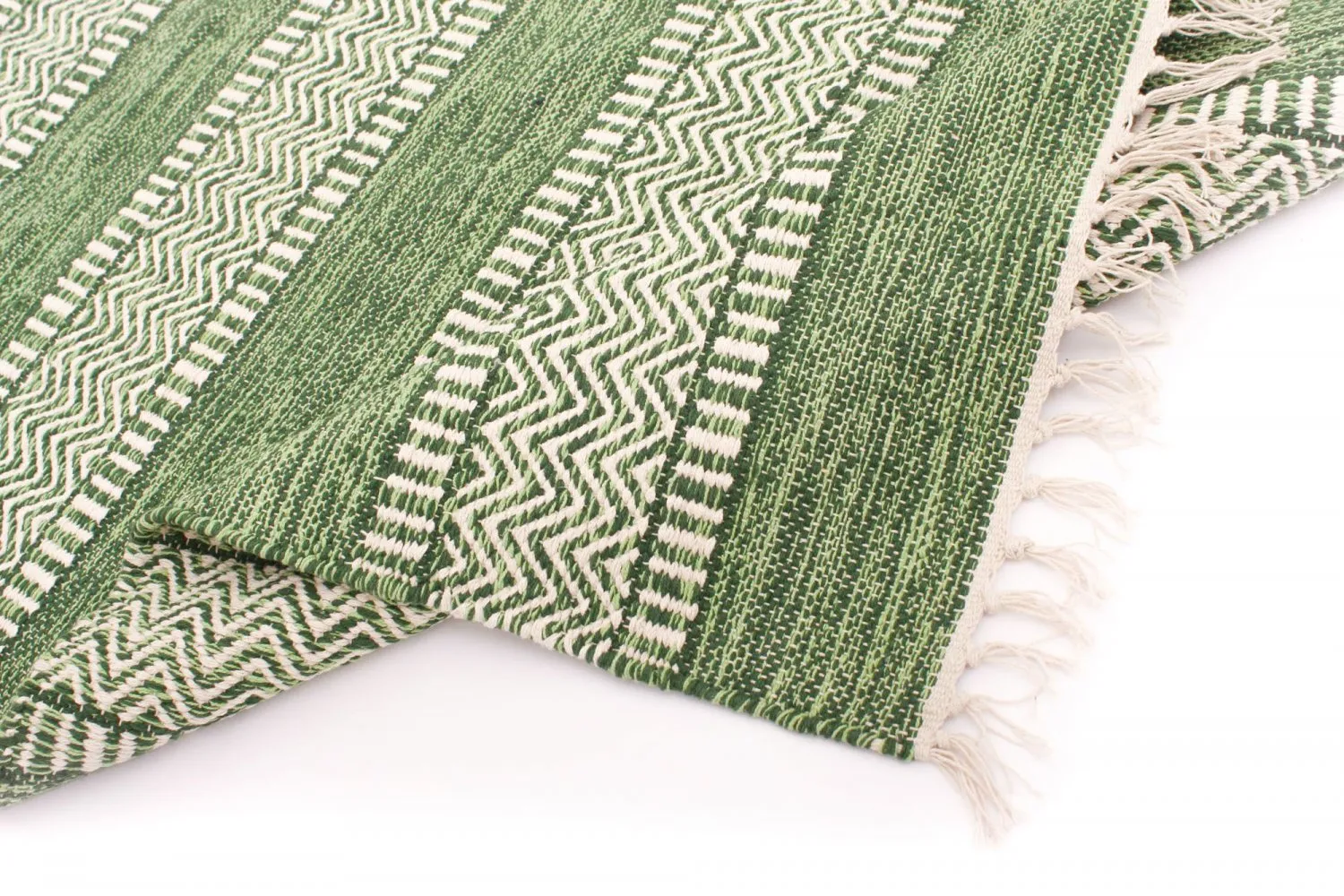 Handgewebter Flickenteppich aus 100 % Baumwolle.