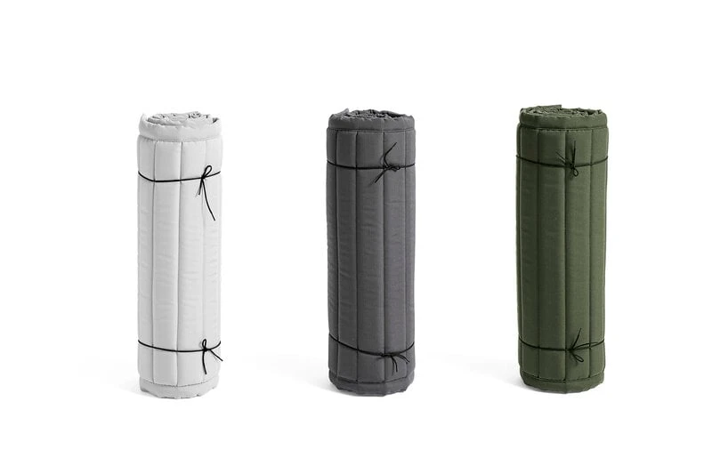 Die gesteppte Auflage passt zur Palissade-Chaiselongue von HAY. Die rutschfeste Auflage ist mit wasserabweisendem Teflon-Gewebe gepolstert und verfügt über Gurte zur Befestigung an der Chaiselongue. Außerdem können die Bänder auch zum Aufrollen des Kissens verwendet werden, wenn es nicht gebraucht wird.