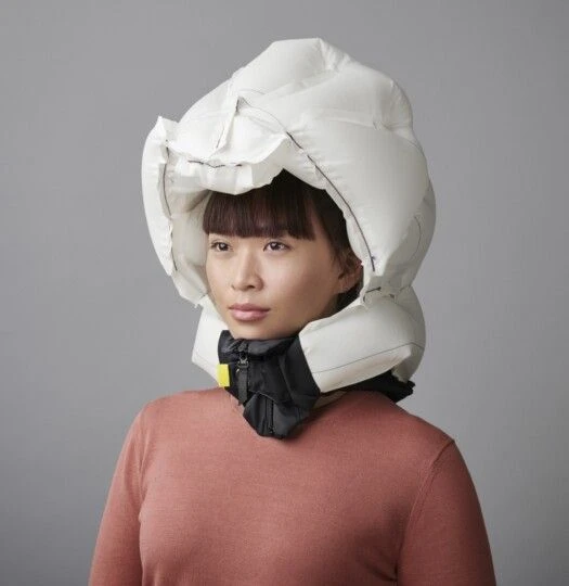 Der Kragen ist ergonomisch geformt und hat eine gleichmäßige Gewichtsverteilung über die Schultern. Es ist hinten etwas schwerer als vorne, so dass beim Radfahren das Gewicht auf dem Rücken liegt. Die umlaufende Abdeckung ermöglicht es auch, das Aussehen des Hövding zu verändern. Der Bezug lässt sich leicht abnehmen und waschen oder gegen einen anderen austauschen, je nach Stimmung oder Persönlichkeit.