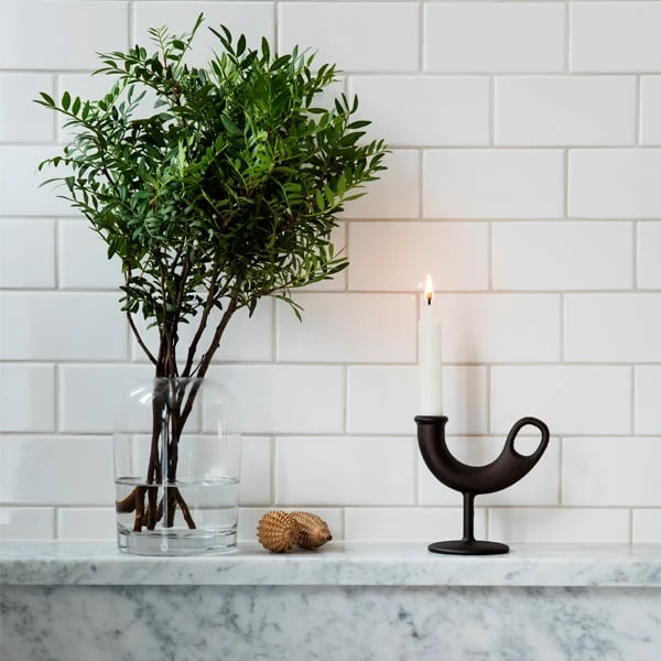Der Kerzenhalter Ildhane von Anderssen & Voll besticht durch eine faszinierende, ausdrucksstarke Form, die an einen Vogel mit einem stattlichen Schwanz erinnert: ild ist norwegisch für Feuer und hane steht für Hahn. Anderssen & Voll gestaltete 2015 die Inneneinrichtung von Nedre Foss Gård, einem exklusiven Restaurant in Oslo, und der gusseiserne Kerzenhalter entstand als Erweiterung des Projekts. Der skulpturartige Ildhane ist nicht nur der perfekte Begleiter für Kerzen, sondern auch ein attraktives Dekoelement. Anderssen & Voll beschreibt Ildhane als eine Kombination aus Paris und Kalevala, dem Nationalepos Finnlands.