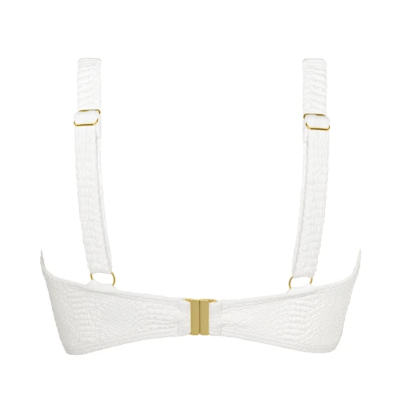Das Lizzard Bralette Bikini Oberteil von Annadiva Swim ist in der Farbe Ecru erhältlich. Die Lizzard Serie ähnelt der Snake Serie vom letzten Jahr, allerdings in einer anderen Farbe. Ein weiterer Vorteil ist, dass Sie in Weiß besonders gebräunt aussehen werden. Der Bügel im Oberteil sorgt für die nötige Unterstützung, damit Ihr Bikini den ganzen Tag lang an der richtigen Position sitzen bleibt. Kombinieren Sie dieses Oberteil mit einem der Bikini Hosen aus der Lizzard Kollektion. Soaking up the sun!