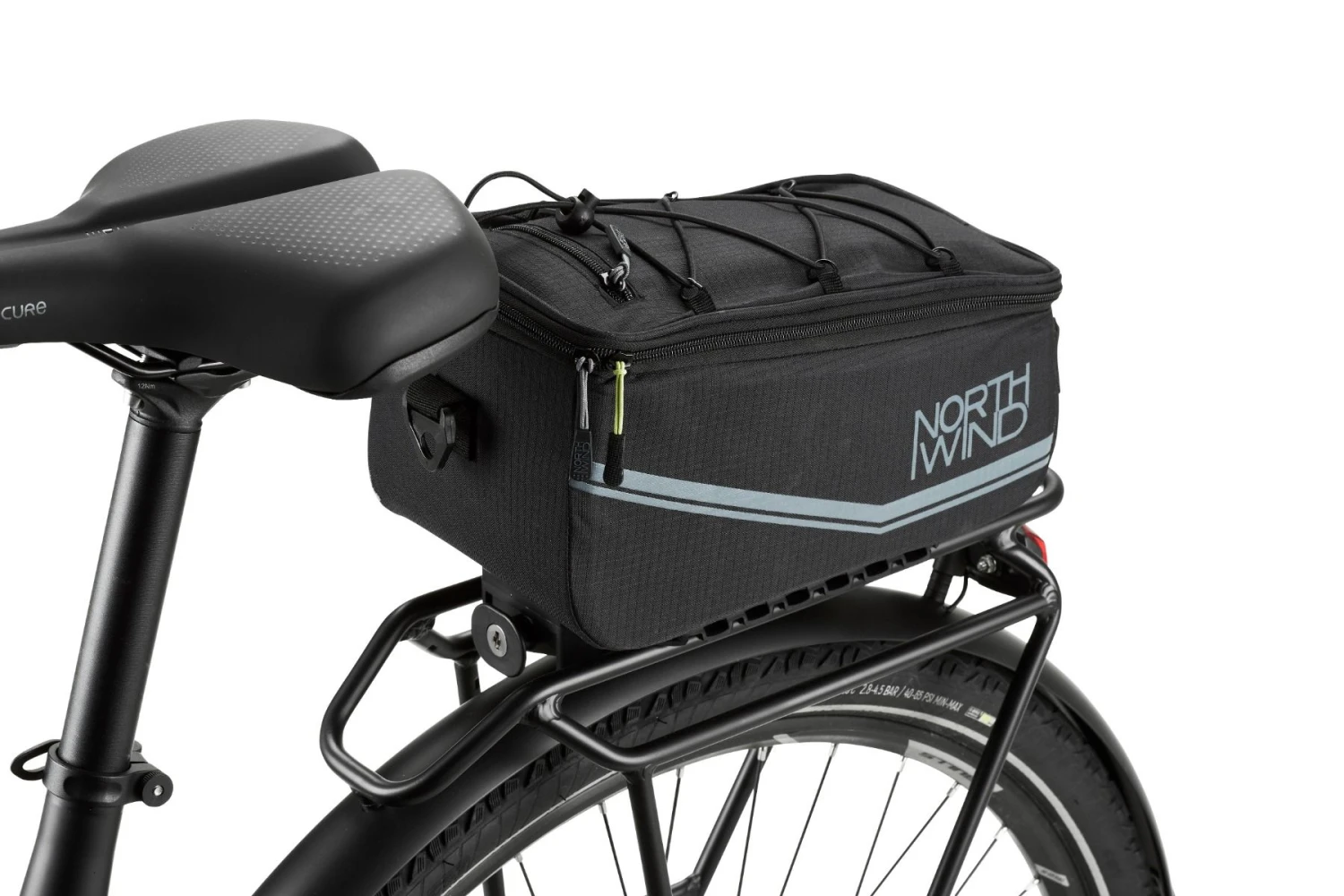 Gepäckträgertasche im stylischen Design, ausgestattet mit Rail Adapter für MonkeyLoad Gepäckträger, abnehmbarer Trageriemen. Das Deckelfach ist mit einer kleiner Reißverschluss-Tasche sowie mit einer Kordelzugbefestigung für zusätzliches Gepäck ausgestattet, reflektierender Aufdruck, inkl. Regenhülle, Haltegriff.
