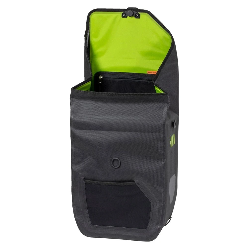 Die Innenversteifung macht die Tasche standfest und formstabil, das helle Innenleben erleichtert das Verstauen und schnelle Wiederfinden von Gepäckstücken. Und durch den innovativen Magnetverschluss wird das Öffnen und Schließen zum Kinderspiel. Mit 16 Litern Fassungsvolumen ist die E-Mate die ideale Fahrradtasche für Tagestouren oder Stadterkundungen mit dem E-Bike.