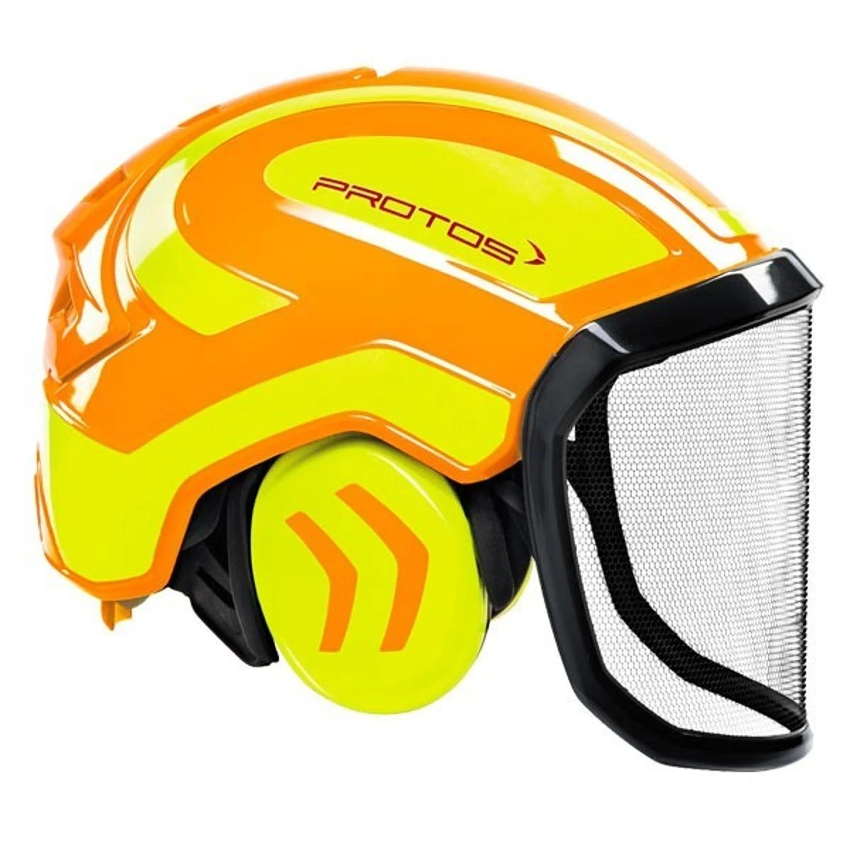 Sicherheitshelm für härteste Einsätze von nass-kalt bis trocken-heiss, großartige Hinterlüftung für ausgeglichenen Temperaturhaushalt – Visier kann selbst bei kältesten Temperaturen nicht beschlagen und gefrieren, Integral-Lösung: alle Teile sind innerhalb der Helmschale integriert, Hängenbleiben ist so gut wie ausgeschlossen, großes Sichtfeld, regulierbare Nackenschutzschale schützt den Hinterkopf und fixiert den Helm perfekt, zweifarbige Kombination für erhöhte Sichtbarkeit, Schutz vor vertikalen und horizontalen Schlägen, perfekter Sitz am Kopf, integrierter verstellbarer Gehörschutz mit exakter Anpassung, perfekter Feuchtigkeitstransport durch Pfanner Klima-AIR Gewebe, Model: Protos Integral Forest