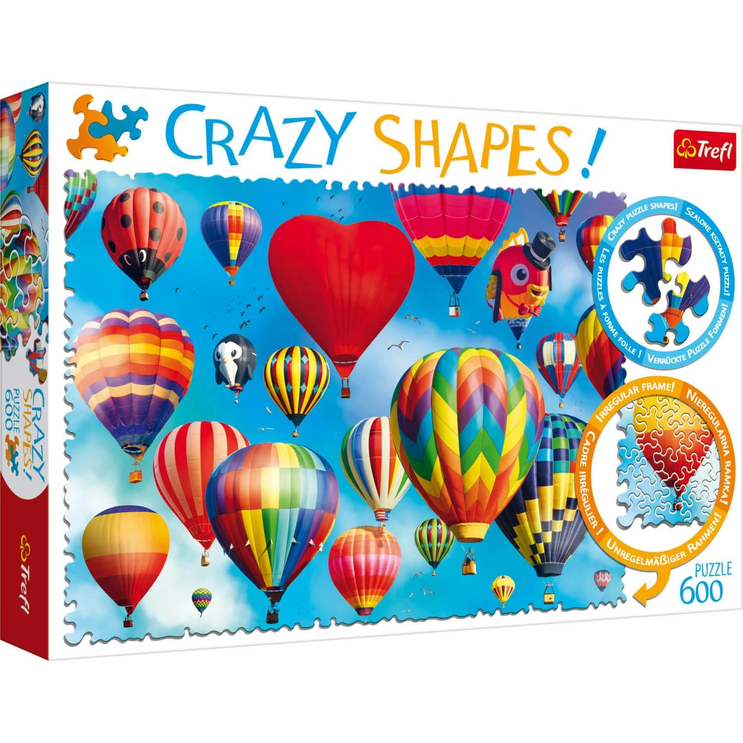 Puzzle mit 600 Teilen aus der Serie CRAZY SHAPES der Marke Trefl. Die Puzzleteile haben verrückte Formen, nicht standardmäßig, ohne gerade Linien, und der Rand des Bildes ist schief und uneben. Abmessungen des zusammengesetzten Puzzles: 68 x 48 cm.