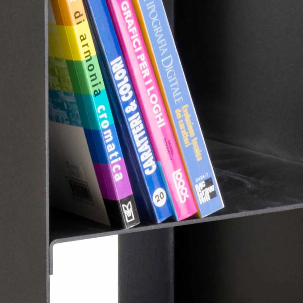 Holzblockhalter aus schwarzem Stahl mit Regalen, modernes Design made in Italy.