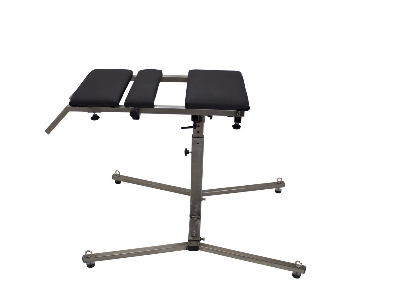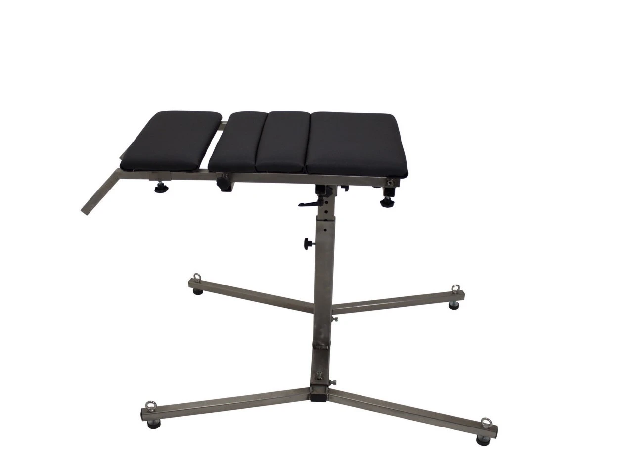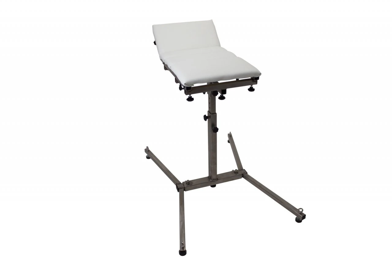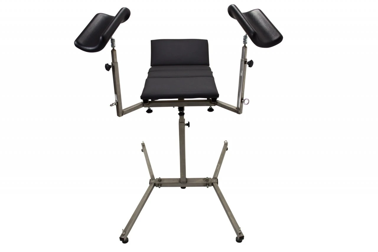 Für einen Gyn Stuhl lassen sich die Beinhalter (optional) einfach anbauen und in der Höhe und Winkel verstellen.