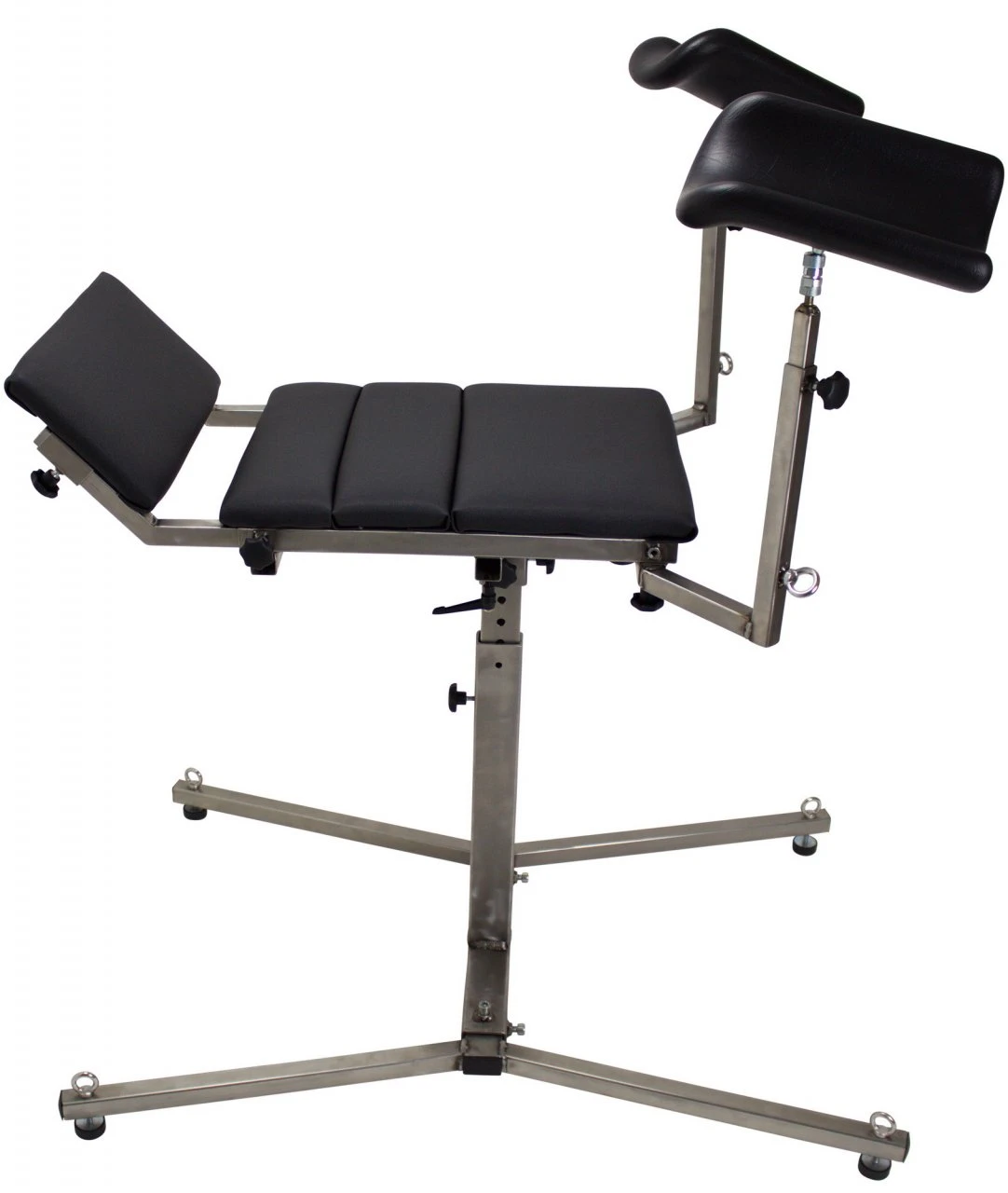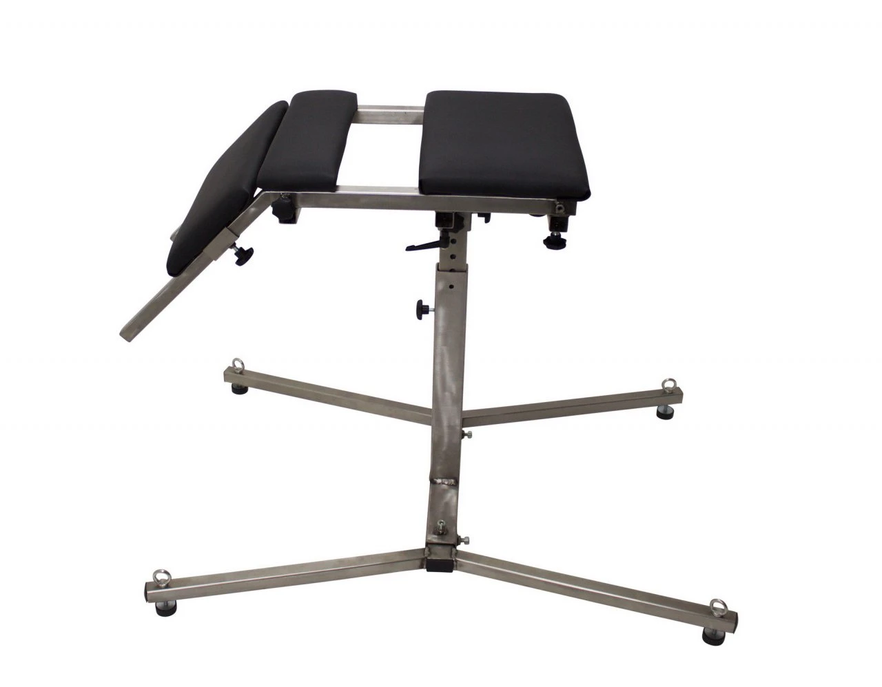 Unser Multitalent, der Strafbock aus Edelstahl lässt sich als Strafbock, Gyn Stuhl, Liegebank und Andreaskreuz (als Zubehör erhältlich) verwenden.